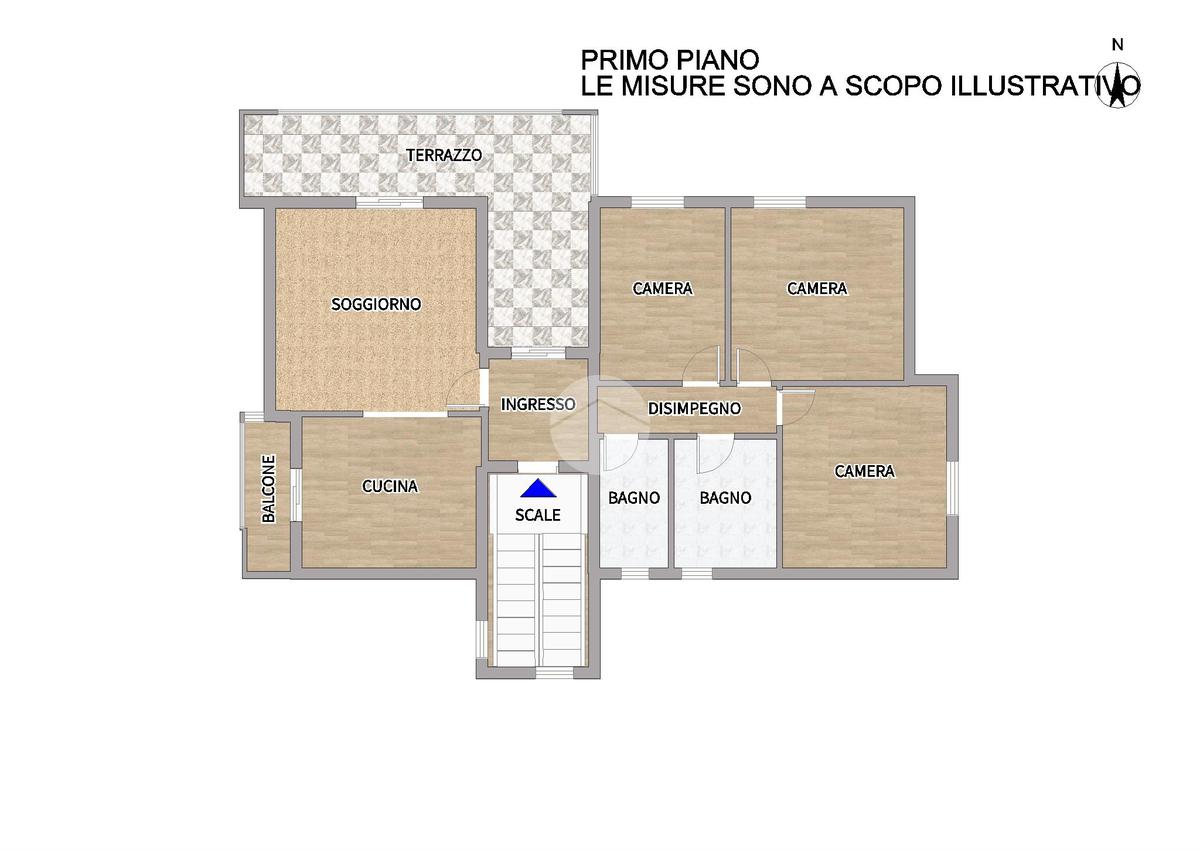 L’abitazione si compone di: luminoso soggiorno con accesso diretto al terrazzo e cucina abitabile con balcone dedicato. Attraverso un disimpegno si accede alla zona notte con 3 camere matrimoniali e 2 bagni finestrati: uno con box doccia e l’altro con vasca